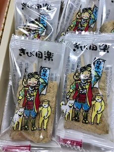 2018/12/07 岡山銘菓を英語でいうと 「あれ、これって英語でなんていうんだろう。」って考えることがあります。 今日、岡山に行かれた生徒さんから頂いたお土産もその一つ。皆さんなら「きび田楽」って英語でどういいますか。 お菓子のパッケージには3匹のお供を伴ったお馴染みの桃太郎のイラスト。 ちなみに「なす田楽」を英語で言う時はgrilled eggplant with sweet miso pasteとなりますが、「きび田楽」は味噌は使っていません。その形から「田楽」と名付けられたとのことです。そもそも「田楽」とは何なのでしょう?NHKのチコちゃんに聞いてみましょうか? ........とても美味しいお菓子ありがとうございました。 tagPlaceholderカテゴリ: 英語表現, 旅行, 食べ物, TV, お土産, 生徒さん, 日本, 国内旅行
